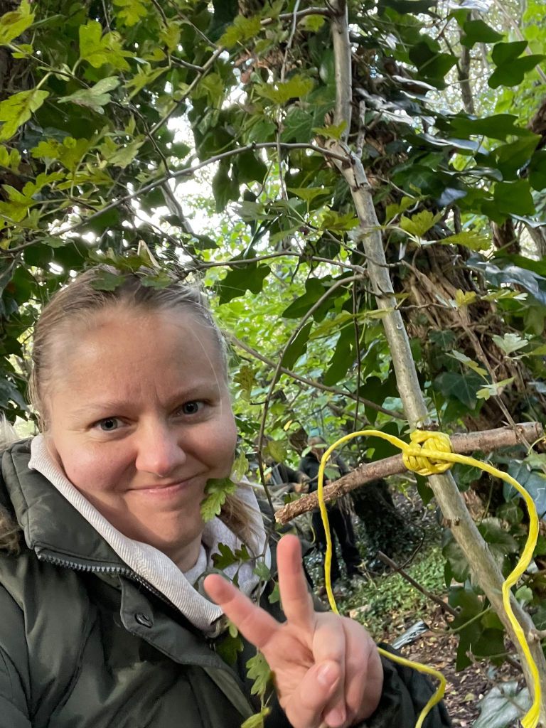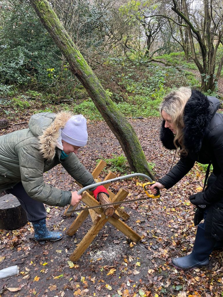 Art in the Autumn forestLighting & managing a fire are key skills to learnSitting around the fire, singing songs or telling tales. Enjoy a moment of mindfulness,A wooden photo frame, anyone?Make a friend with a wiggly earthworm and find out what great work they are doing for the plants and trees.Making a face for a treeThese knots are tricky! once you learn them – there is a whole universe to tie tie and build.Nests